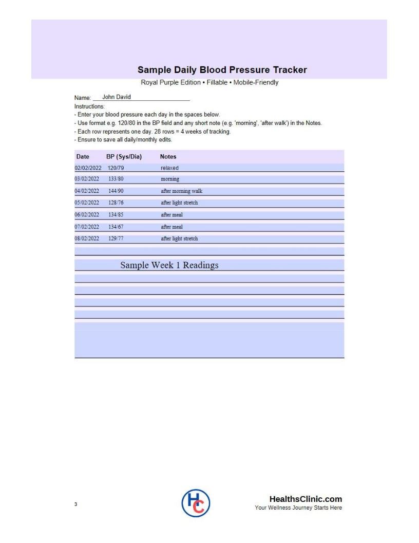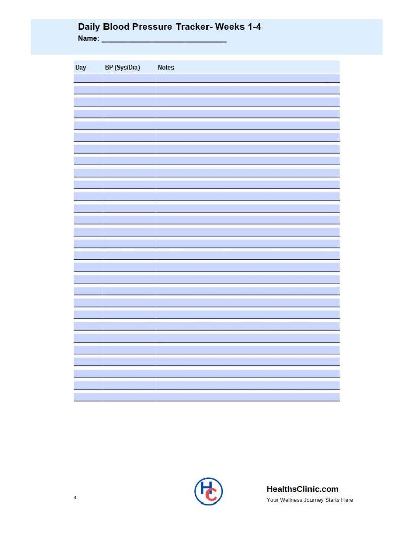 This 19-week digital logbook comes with beautifully colored daily log tables to record your readings with ease, and a weekly summary & reflection section to help you spot patterns, track progress, and discuss insights with your doctor. See: AHA
